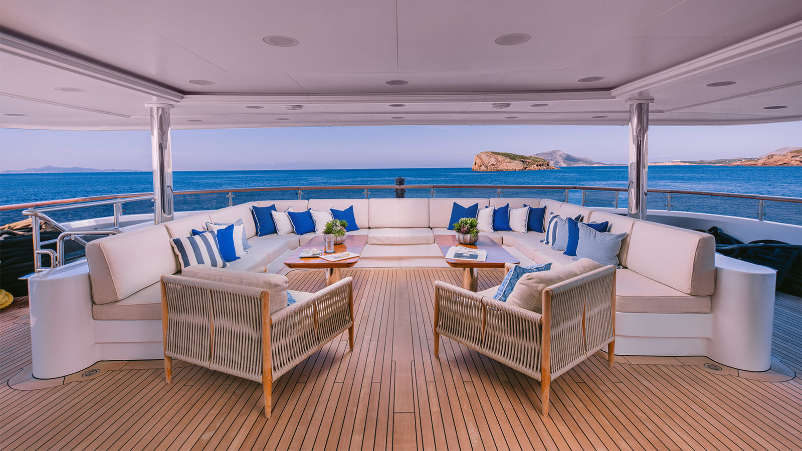 Large Sun Deck – Expansive relaxation areas with jacuzzi, bar, and social zones.